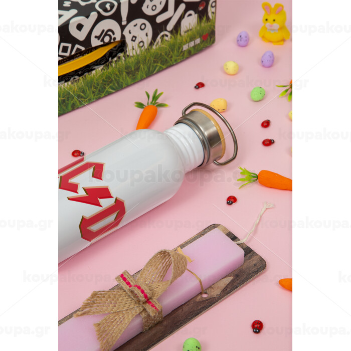 AC/DC, Πασχαλινή Λαμπάδα με παγούρι μεταλλικό (620ml, stainless steel) & κερί αρωματικό πλακέ (30cm) (ΡΟΖ)