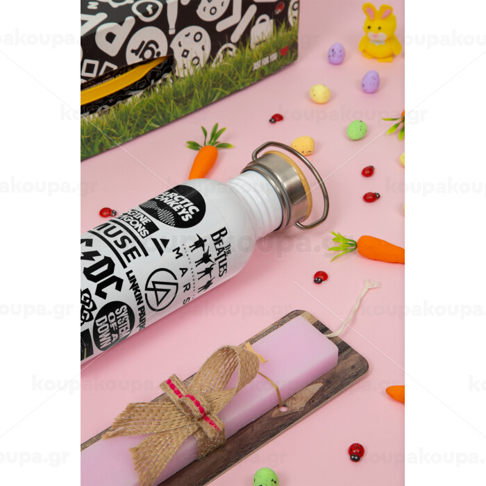 Best Rock Bands Collection, Πασχαλινή Λαμπάδα με παγούρι μεταλλικό (620ml, stainless steel) & κερί αρωματικό πλακέ (30cm) (ΡΟΖ)