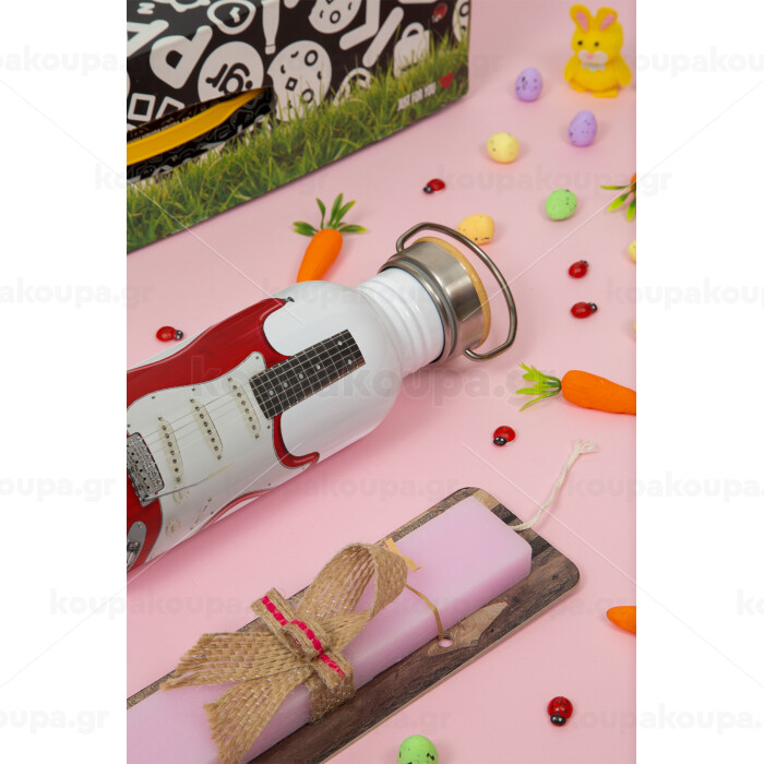 Guitar stratocaster, Πασχαλινή Λαμπάδα με παγούρι μεταλλικό (620ml, stainless steel) & κερί αρωματικό πλακέ (30cm) (ΡΟΖ)