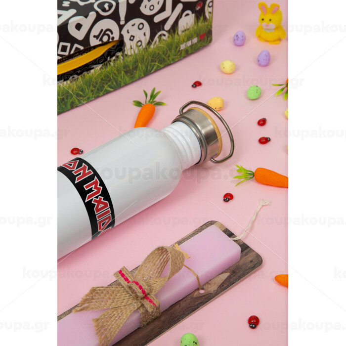 Iron maiden, Πασχαλινή Λαμπάδα με παγούρι μεταλλικό (620ml, stainless steel) & κερί αρωματικό πλακέ (30cm) (ΡΟΖ)