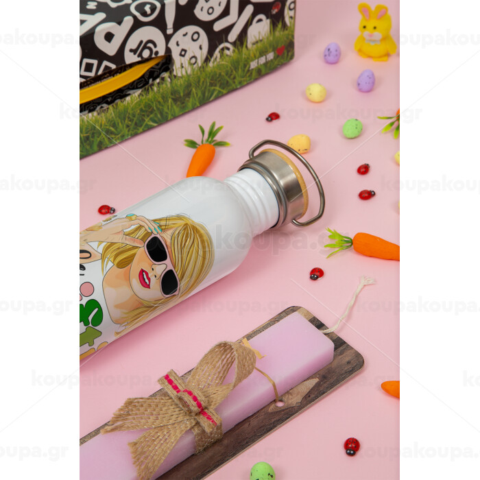 Little Swiftie, Πασχαλινή Λαμπάδα με παγούρι μεταλλικό (620ml, stainless steel) & κερί αρωματικό πλακέ (30cm) (ΡΟΖ)