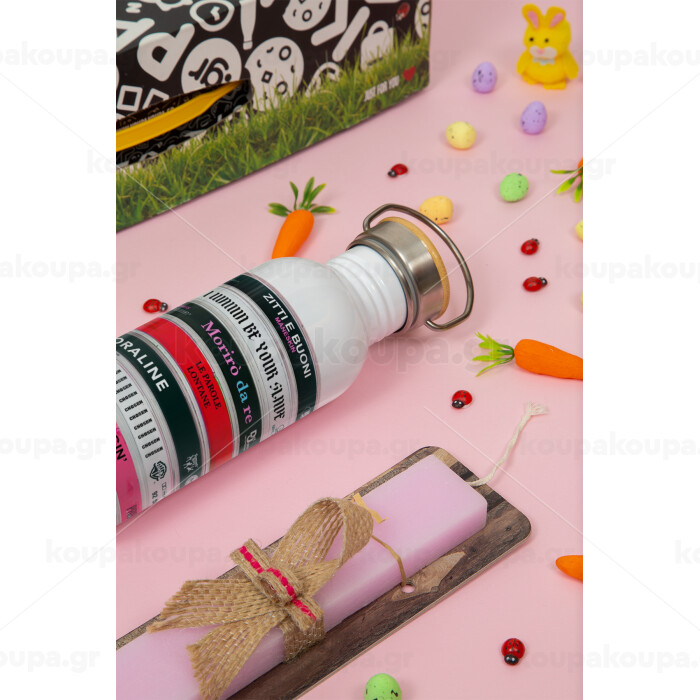 Maneskin Cassette, Πασχαλινή Λαμπάδα με παγούρι μεταλλικό (620ml, stainless steel) & κερί αρωματικό πλακέ (30cm) (ΡΟΖ)