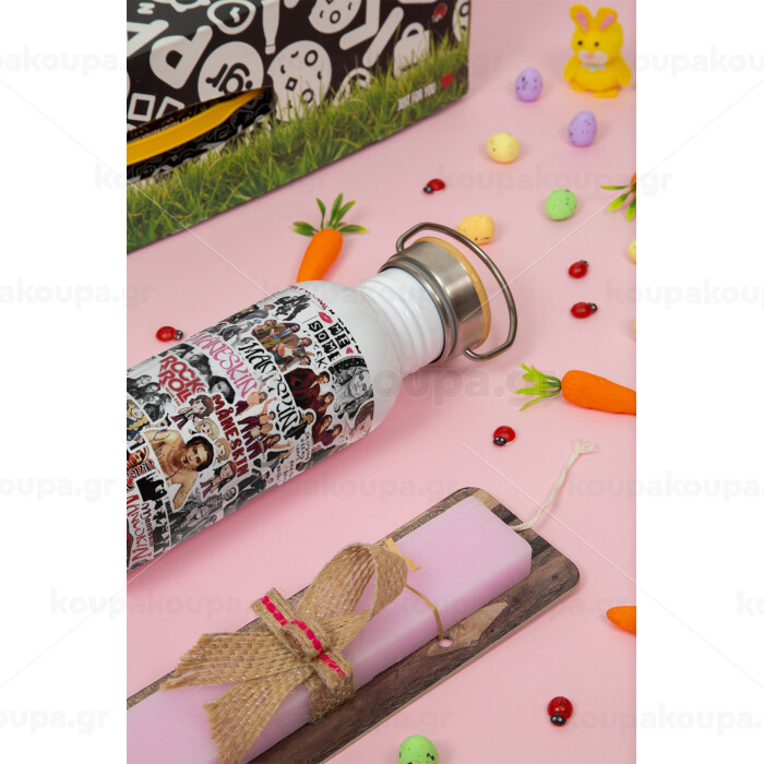 Maneskin stickers, Πασχαλινή Λαμπάδα με παγούρι μεταλλικό (620ml, stainless steel) & κερί αρωματικό πλακέ (30cm) (ΡΟΖ)