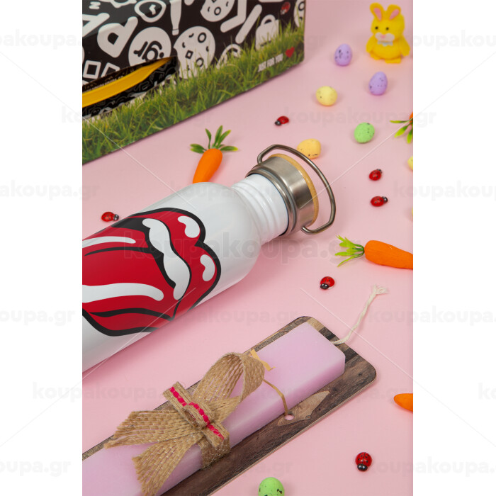 Rolling Stones Kiss, Πασχαλινή Λαμπάδα με παγούρι μεταλλικό (620ml, stainless steel) & κερί αρωματικό πλακέ (30cm) (ΡΟΖ)