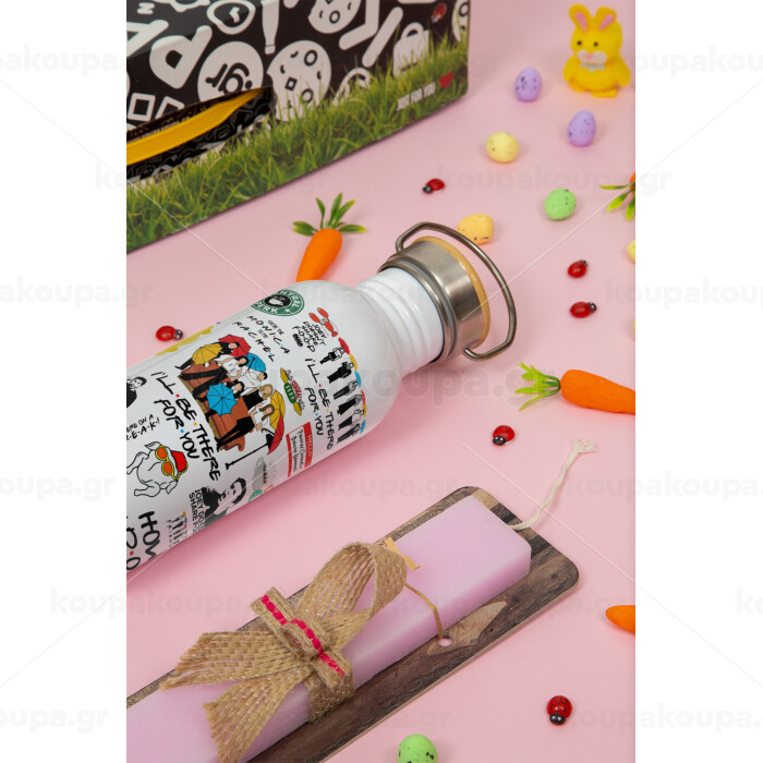 Friends, Πασχαλινή Λαμπάδα με παγούρι μεταλλικό (620ml, stainless steel) & κερί αρωματικό πλακέ (30cm) (ΡΟΖ)