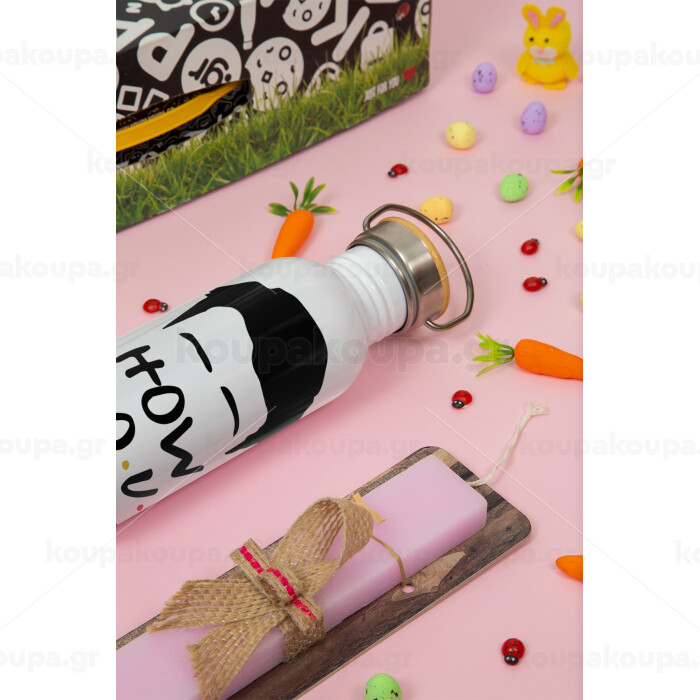 Friends how you doin?, Πασχαλινή Λαμπάδα με παγούρι μεταλλικό (620ml, stainless steel) & κερί αρωματικό πλακέ (30cm) (ΡΟΖ)