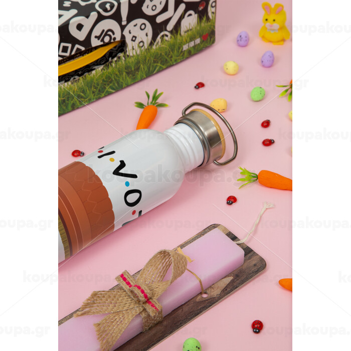Friends Pivot, Πασχαλινή Λαμπάδα με παγούρι μεταλλικό (620ml, stainless steel) & κερί αρωματικό πλακέ (30cm) (ΡΟΖ)