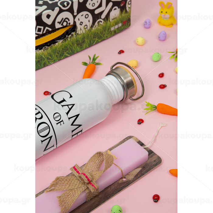 Game of Thrones, Πασχαλινή Λαμπάδα με παγούρι μεταλλικό (620ml, stainless steel) & κερί αρωματικό πλακέ (30cm) (ΡΟΖ)