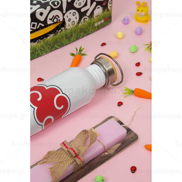 Naruto Akatsuki Cloud, Πασχαλινή Λαμπάδα με παγούρι μεταλλικό (620ml, stainless steel) & κερί αρωματικό πλακέ (30cm) (ΡΟΖ)