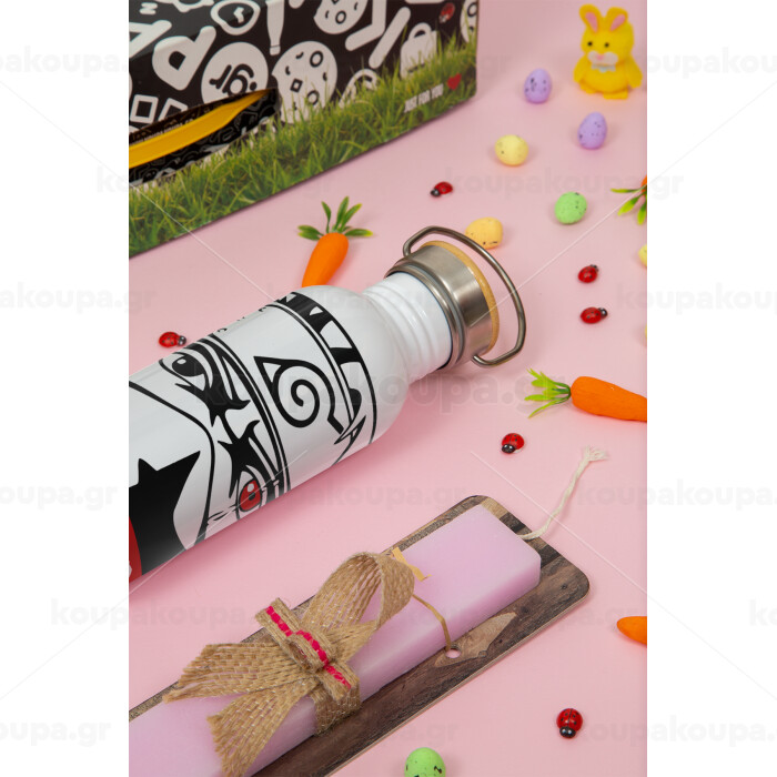 Naruto anime, Πασχαλινή Λαμπάδα με παγούρι μεταλλικό (620ml, stainless steel) & κερί αρωματικό πλακέ (30cm) (ΡΟΖ)