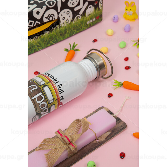 Outerbanks Pogue Life, Πασχαλινή Λαμπάδα με παγούρι μεταλλικό (620ml, stainless steel) & κερί αρωματικό πλακέ (30cm) (ΡΟΖ)