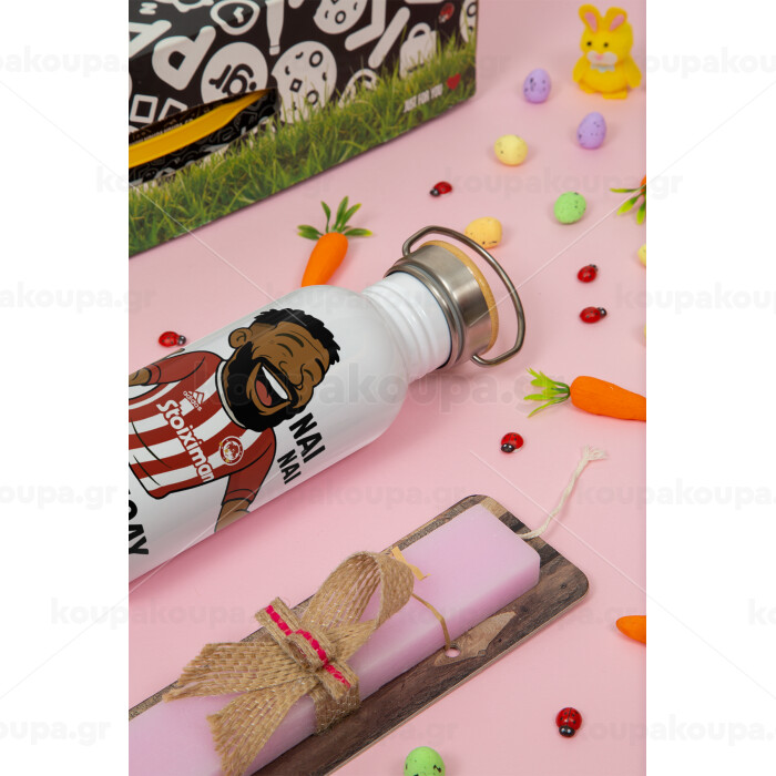 Ροντινέι, "ΠΟΛΥ ΚΟΥΡΑΣΜΕΝΟΣ", Πασχαλινή Λαμπάδα με παγούρι μεταλλικό (620ml, stainless steel) & κερί αρωματικό πλακέ (30cm) (ΡΟΖ)