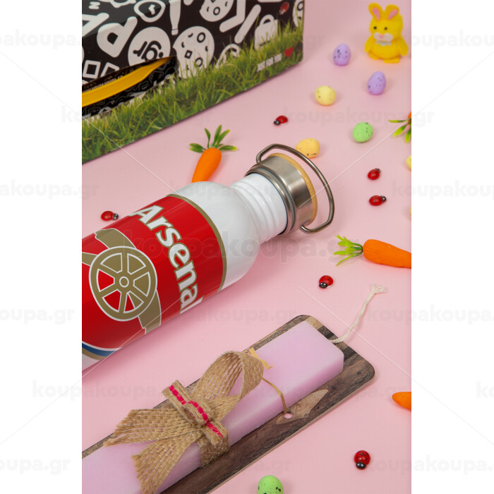 Arsenal, Πασχαλινή Λαμπάδα με παγούρι μεταλλικό (620ml, stainless steel) & κερί αρωματικό πλακέ (30cm) (ΡΟΖ)