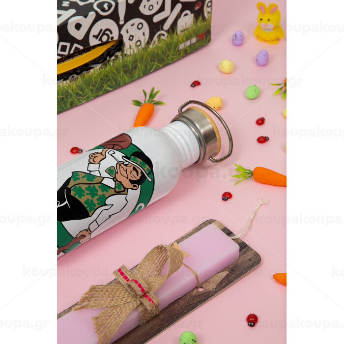 Boston Celtics, Πασχαλινή Λαμπάδα με παγούρι μεταλλικό (620ml, stainless steel) & κερί αρωματικό πλακέ (30cm) (ΡΟΖ)