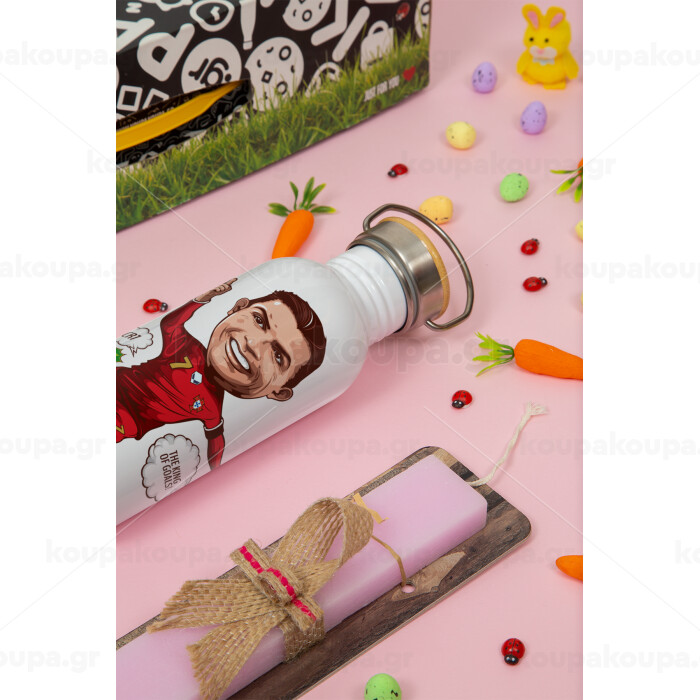 Cristiano Ronaldo, Πασχαλινή Λαμπάδα με παγούρι μεταλλικό (620ml, stainless steel) & κερί αρωματικό πλακέ (30cm) (ΡΟΖ)