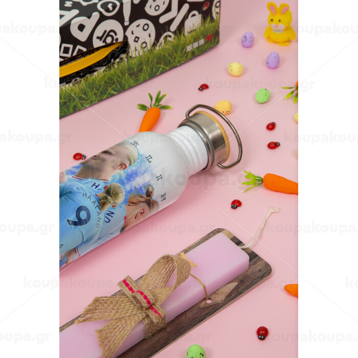 Erling Haaland, Πασχαλινή Λαμπάδα με παγούρι μεταλλικό (620ml, stainless steel) & κερί αρωματικό πλακέ (30cm) (ΡΟΖ)