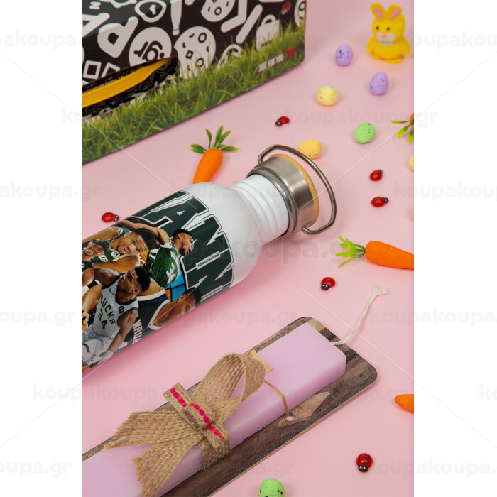 Giannis Antetokounmpo, Πασχαλινή Λαμπάδα με παγούρι μεταλλικό (620ml, stainless steel) & κερί αρωματικό πλακέ (30cm) (ΡΟΖ)