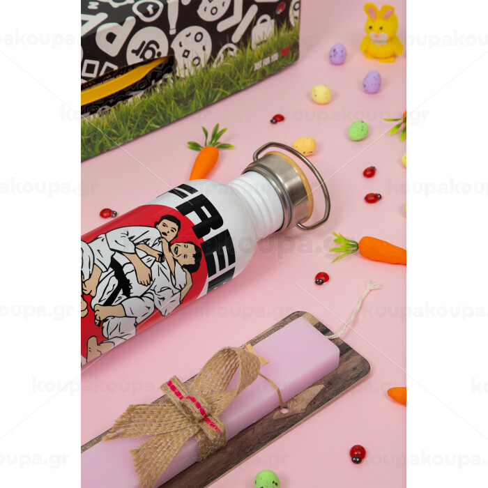 JUDO free hugs, Πασχαλινή Λαμπάδα με παγούρι μεταλλικό (620ml, stainless steel) & κερί αρωματικό πλακέ (30cm) (ΡΟΖ)