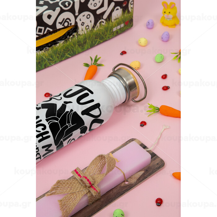 Judo Touch Me And Your First Lesson Is Free, Πασχαλινή Λαμπάδα με παγούρι μεταλλικό (620ml, stainless steel) & κερί αρωματικό πλακέ (30cm) (ΡΟΖ)