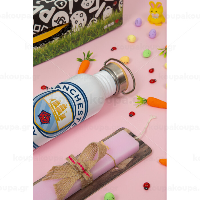 Manchester City FC , Πασχαλινή Λαμπάδα με παγούρι μεταλλικό (620ml, stainless steel) & κερί αρωματικό πλακέ (30cm) (ΡΟΖ)
