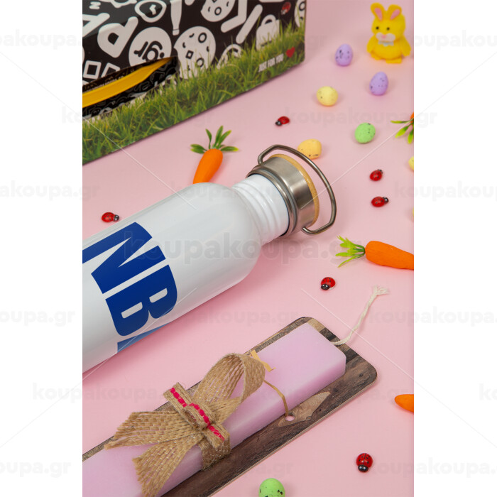 NBA, Πασχαλινή Λαμπάδα με παγούρι μεταλλικό (620ml, stainless steel) & κερί αρωματικό πλακέ (30cm) (ΡΟΖ)