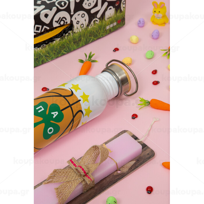 ΠΑΟ BC, Πασχαλινή Λαμπάδα με παγούρι μεταλλικό (620ml, stainless steel) & κερί αρωματικό πλακέ (30cm) (ΡΟΖ)