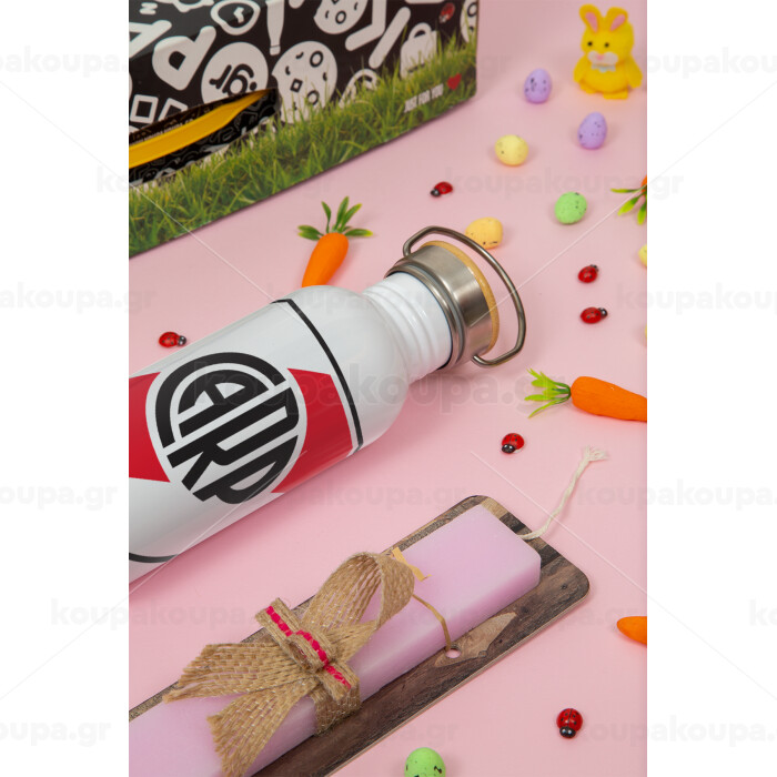 River Plate, Πασχαλινή Λαμπάδα με παγούρι μεταλλικό (620ml, stainless steel) & κερί αρωματικό πλακέ (30cm) (ΡΟΖ)