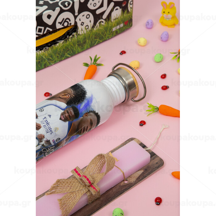Vinicius Junior, Πασχαλινή Λαμπάδα με παγούρι μεταλλικό (620ml, stainless steel) & κερί αρωματικό πλακέ (30cm) (ΡΟΖ)