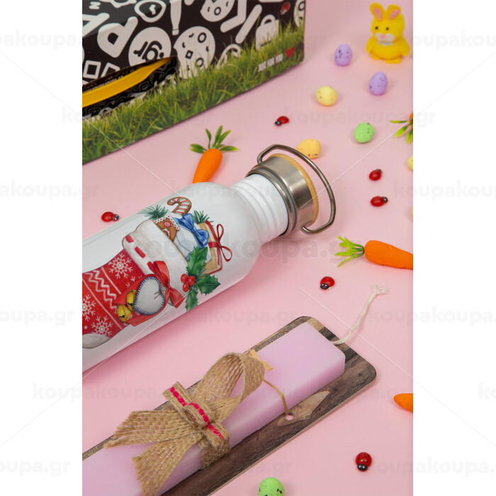 Xmas boot, Πασχαλινή Λαμπάδα με παγούρι μεταλλικό (620ml, stainless steel) & κερί αρωματικό πλακέ (30cm) (ΡΟΖ)