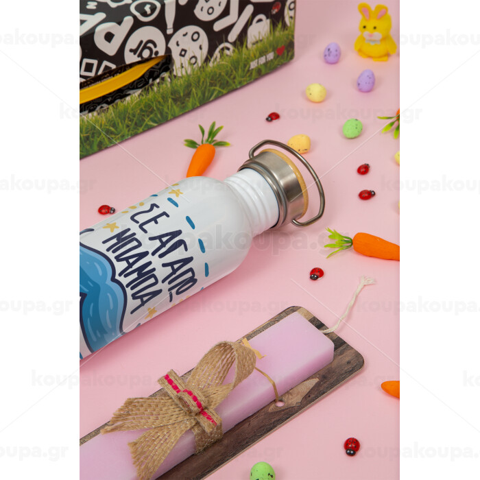 Σε αγαπώ μπαμπά!!!, Πασχαλινή Λαμπάδα με παγούρι μεταλλικό (620ml, stainless steel) & κερί αρωματικό πλακέ (30cm) (ΡΟΖ)