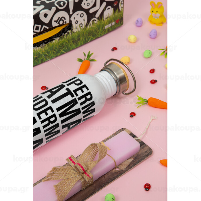MAMAN, Πασχαλινή Λαμπάδα με παγούρι μεταλλικό (620ml, stainless steel) & κερί αρωματικό πλακέ (30cm) (ΡΟΖ)