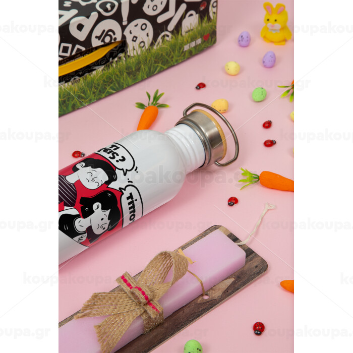 Τι έχεις? Τίποτα!, Πασχαλινή Λαμπάδα με παγούρι μεταλλικό (620ml, stainless steel) & κερί αρωματικό πλακέ (30cm) (ΡΟΖ)