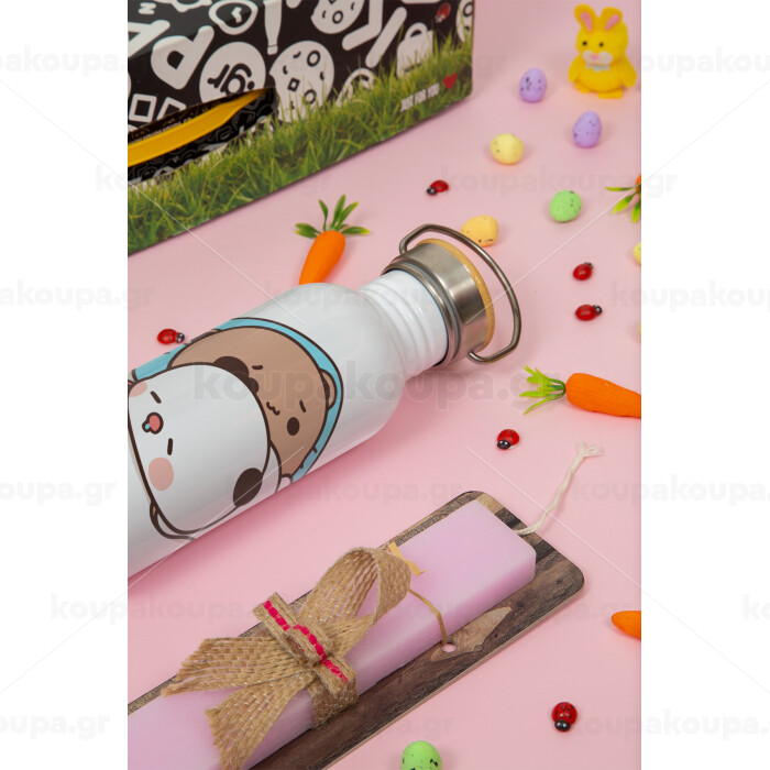 bubu + dudu, Πασχαλινή Λαμπάδα με παγούρι μεταλλικό (620ml, stainless steel) & κερί αρωματικό πλακέ (30cm) (ΡΟΖ)