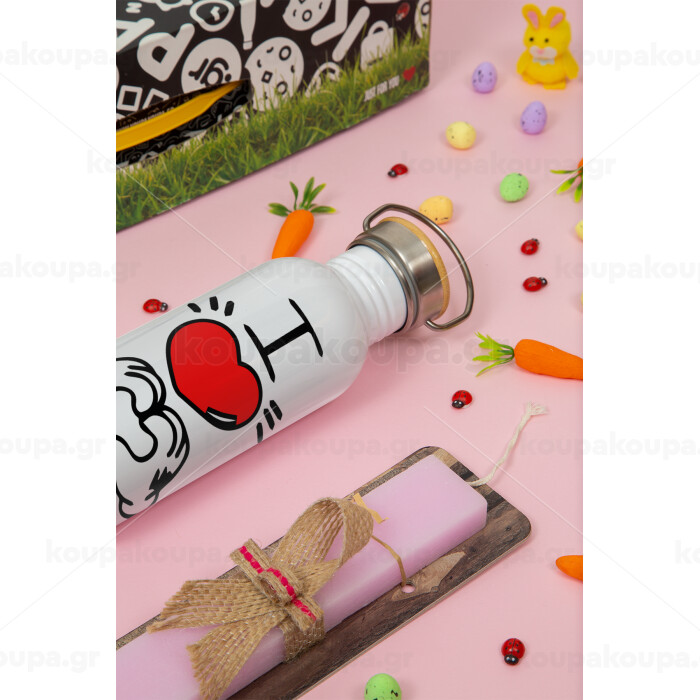 comics hands love, Πασχαλινή Λαμπάδα με παγούρι μεταλλικό (620ml, stainless steel) & κερί αρωματικό πλακέ (30cm) (ΡΟΖ)