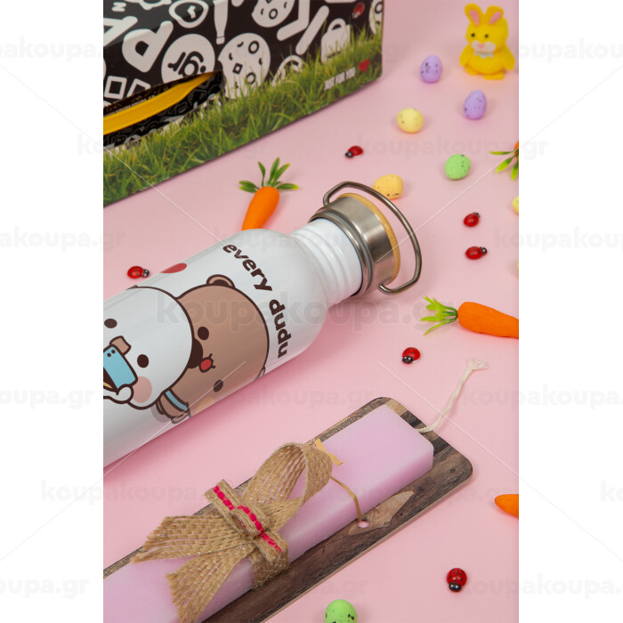 Every Dudu needs a bubu, Πασχαλινή Λαμπάδα με παγούρι μεταλλικό (620ml, stainless steel) & κερί αρωματικό πλακέ (30cm) (ΡΟΖ)