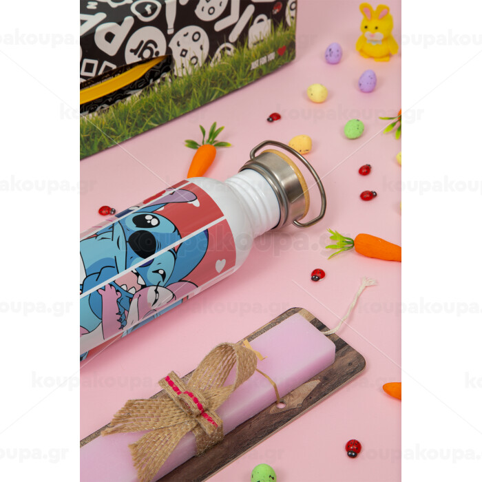 Lilo & Stitch Love, Πασχαλινή Λαμπάδα με παγούρι μεταλλικό (620ml, stainless steel) & κερί αρωματικό πλακέ (30cm) (ΡΟΖ)
