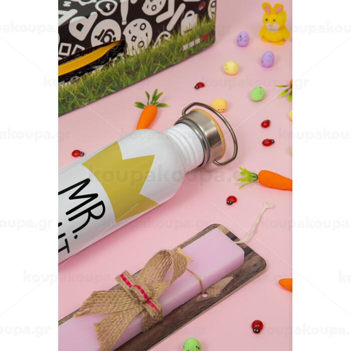 Mr right, Πασχαλινή Λαμπάδα με παγούρι μεταλλικό (620ml, stainless steel) & κερί αρωματικό πλακέ (30cm) (ΡΟΖ)
