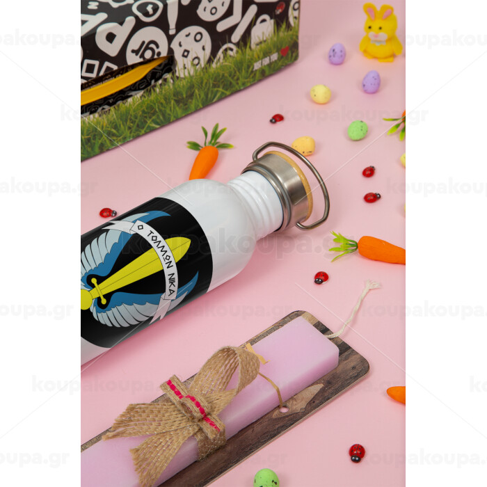 Έμβλημα Μονάδων Καταδρομών Ο Τολμων Νικα - Λοκ, Πασχαλινή Λαμπάδα με παγούρι μεταλλικό (620ml, stainless steel) & κερί αρωματικό πλακέ (30cm) (ΡΟΖ)