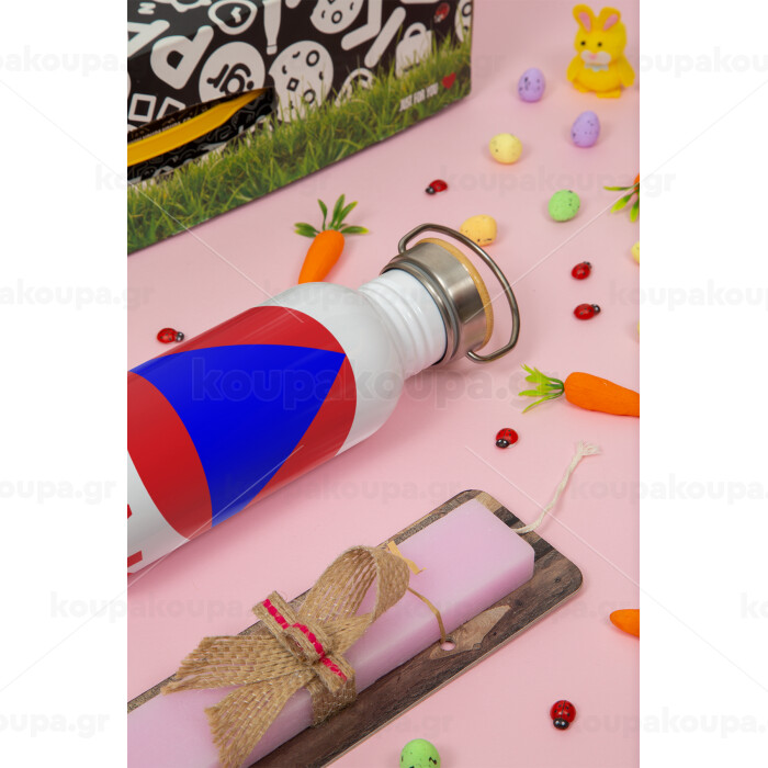 Ε.Μ.Α.Κ., Πασχαλινή Λαμπάδα με παγούρι μεταλλικό (620ml, stainless steel) & κερί αρωματικό πλακέ (30cm) (ΡΟΖ)