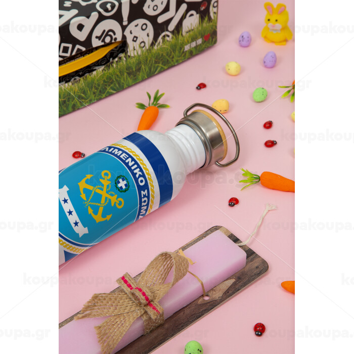 Λιμενικό σώμα, Πασχαλινή Λαμπάδα με παγούρι μεταλλικό (620ml, stainless steel) & κερί αρωματικό πλακέ (30cm) (ΡΟΖ)