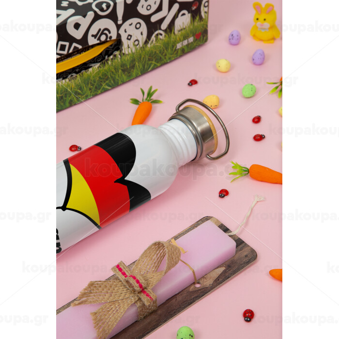Germany flag, Πασχαλινή Λαμπάδα με παγούρι μεταλλικό (620ml, stainless steel) & κερί αρωματικό πλακέ (30cm) (ΡΟΖ)