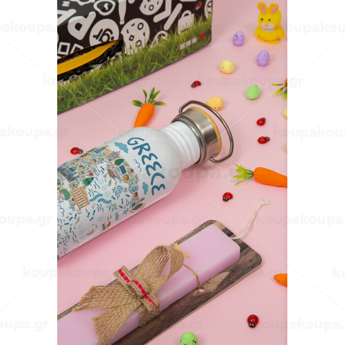 Χάρτης Ελλάδος, Πασχαλινή Λαμπάδα με παγούρι μεταλλικό (620ml, stainless steel) & κερί αρωματικό πλακέ (30cm) (ΡΟΖ)