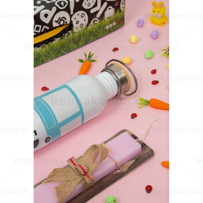 Car BEEP..., Πασχαλινή Λαμπάδα με παγούρι μεταλλικό (620ml, stainless steel) & κερί αρωματικό πλακέ (30cm) (ΡΟΖ)