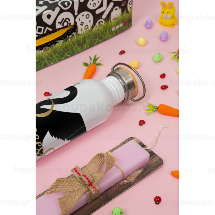Swan Princess, Πασχαλινή Λαμπάδα με παγούρι μεταλλικό (620ml, stainless steel) & κερί αρωματικό πλακέ (30cm) (ΡΟΖ)