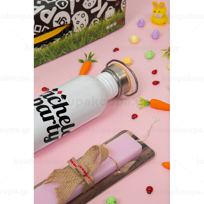 Bachelor party, Πασχαλινή Λαμπάδα με παγούρι μεταλλικό (620ml, stainless steel) & κερί αρωματικό πλακέ (30cm) (ΡΟΖ)