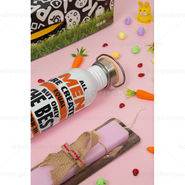 All men are created equal but only the best are born in September, Πασχαλινή Λαμπάδα με παγούρι μεταλλικό (620ml, stainless steel) & κερί αρωματικό πλακέ (30cm) (ΡΟΖ)