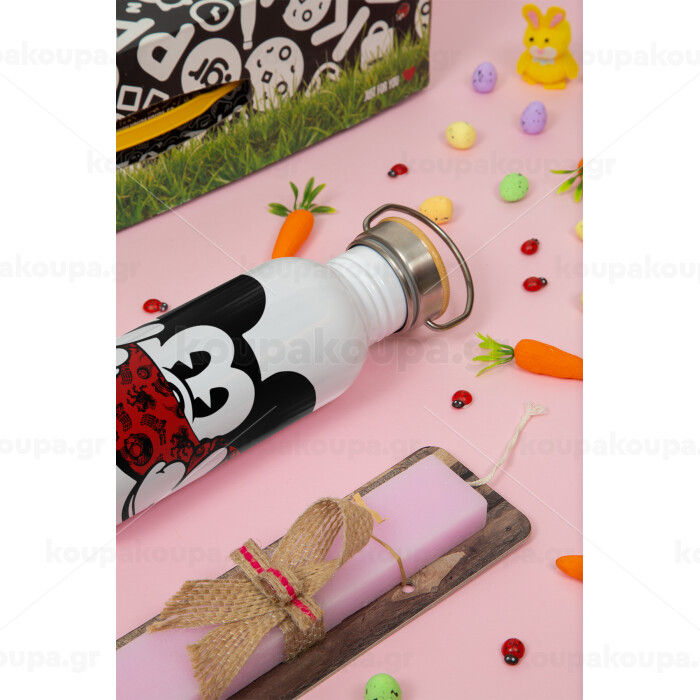 Mickey the fingers, Πασχαλινή Λαμπάδα με παγούρι μεταλλικό (620ml, stainless steel) & κερί αρωματικό πλακέ (30cm) (ΡΟΖ)