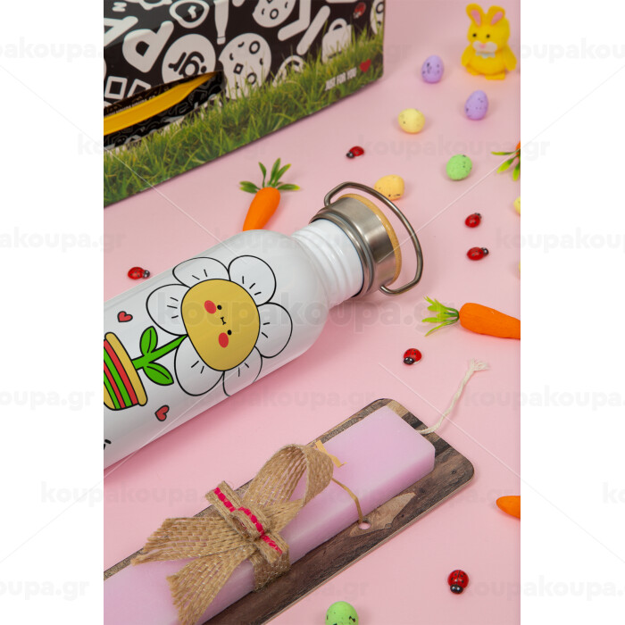 Ευχαριστώ πολύ κυρία!!!, Πασχαλινή Λαμπάδα με παγούρι μεταλλικό (620ml, stainless steel) & κερί αρωματικό πλακέ (30cm) (ΡΟΖ)