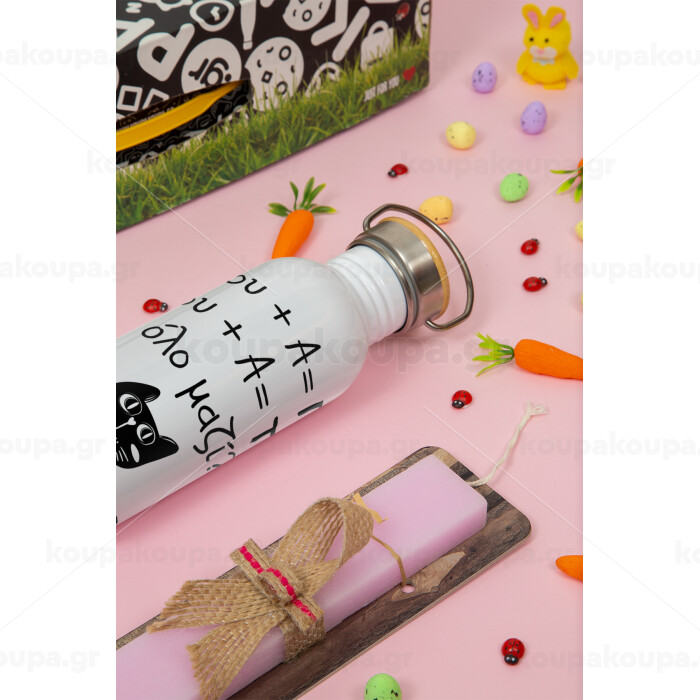 Κατσούλα, Πασχαλινή Λαμπάδα με παγούρι μεταλλικό (620ml, stainless steel) & κερί αρωματικό πλακέ (30cm) (ΡΟΖ)