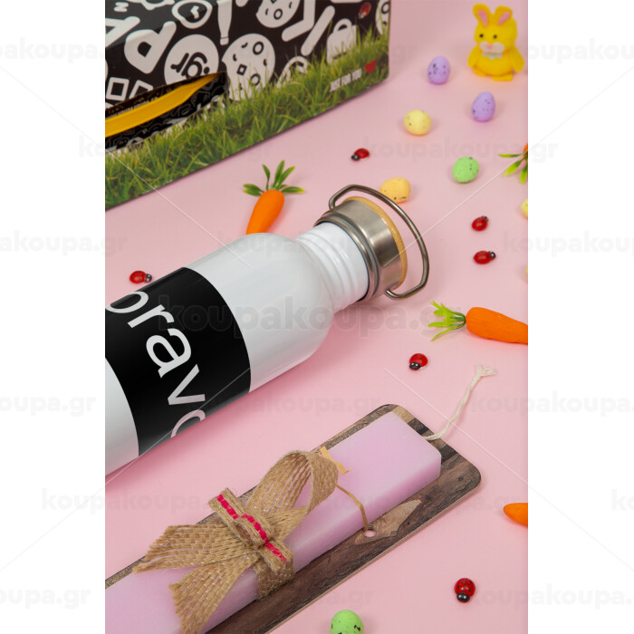 Bravo, Πασχαλινή Λαμπάδα με παγούρι μεταλλικό (620ml, stainless steel) & κερί αρωματικό πλακέ (30cm) (ΡΟΖ)